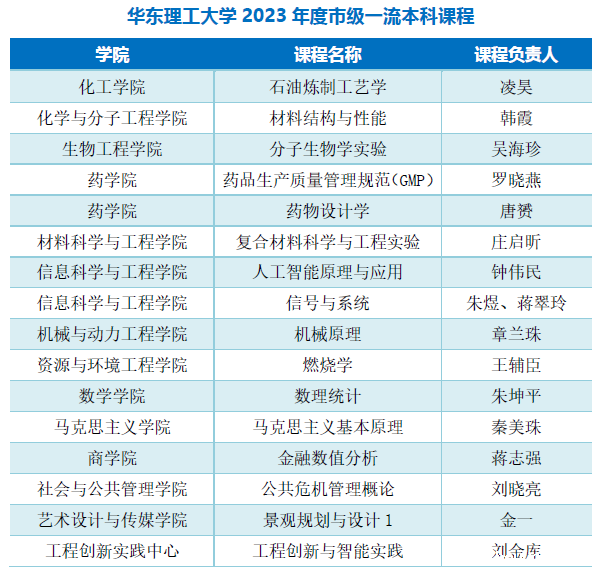 近日,上海市教委公布了2023年度上海高等学校一流本科课程认定结果,共计400门课程获得认定,我校16门课程榜上有名。截至目前,我校共有上海市一流本科课程63门。