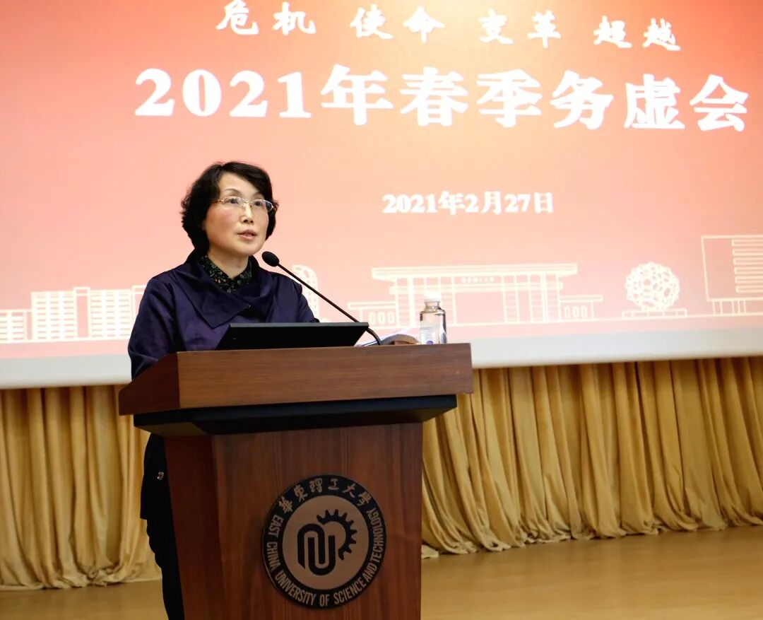 杜慧芳以“改革创新,团结奋进”为主题发表讲话,带领与会人员深入学习了习近平总书记关于思想政治教育工作、人才培养工作、科技创新工作、党史学习教育等重要论述精神,并深入分析了学校当前面临的关键问题,指出要为“十四五”发展做好组织、干部、人才保障,并对开学、换届、党风廉政建设等工作进行了部署安排。