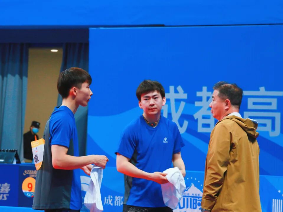 女单冠军王晓彤3:0胜对手(着蓝衣者)