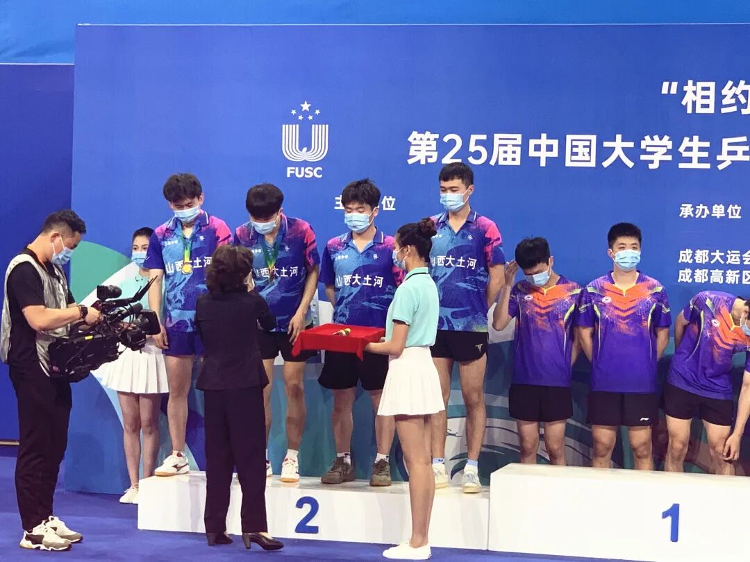 ◎图片:华理高水平乒乓球队获女单冠军(王晓彤)颁奖现场